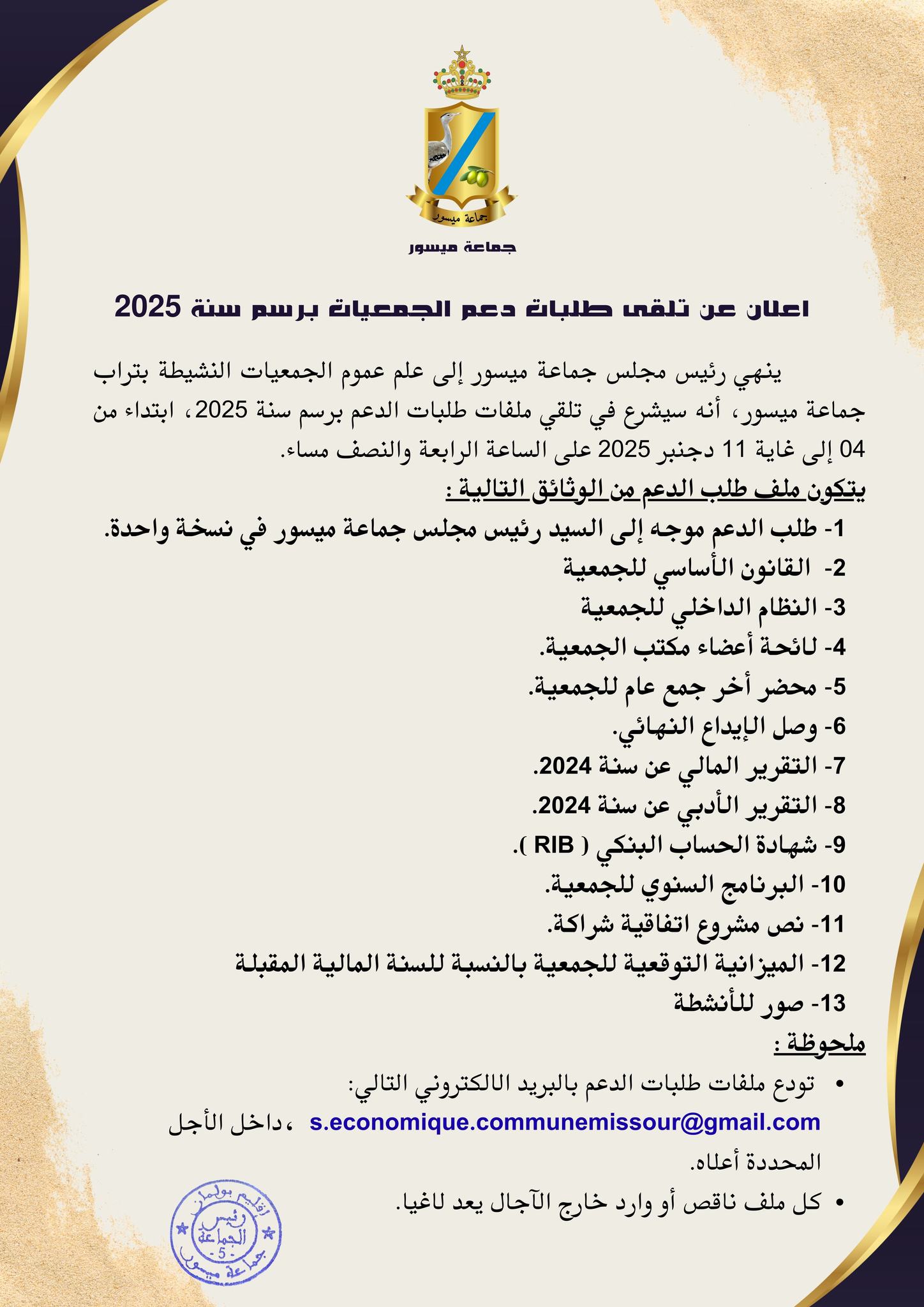 اعلان عن تلقي طلبات دعم الجمعيات برسم سنة 2025.