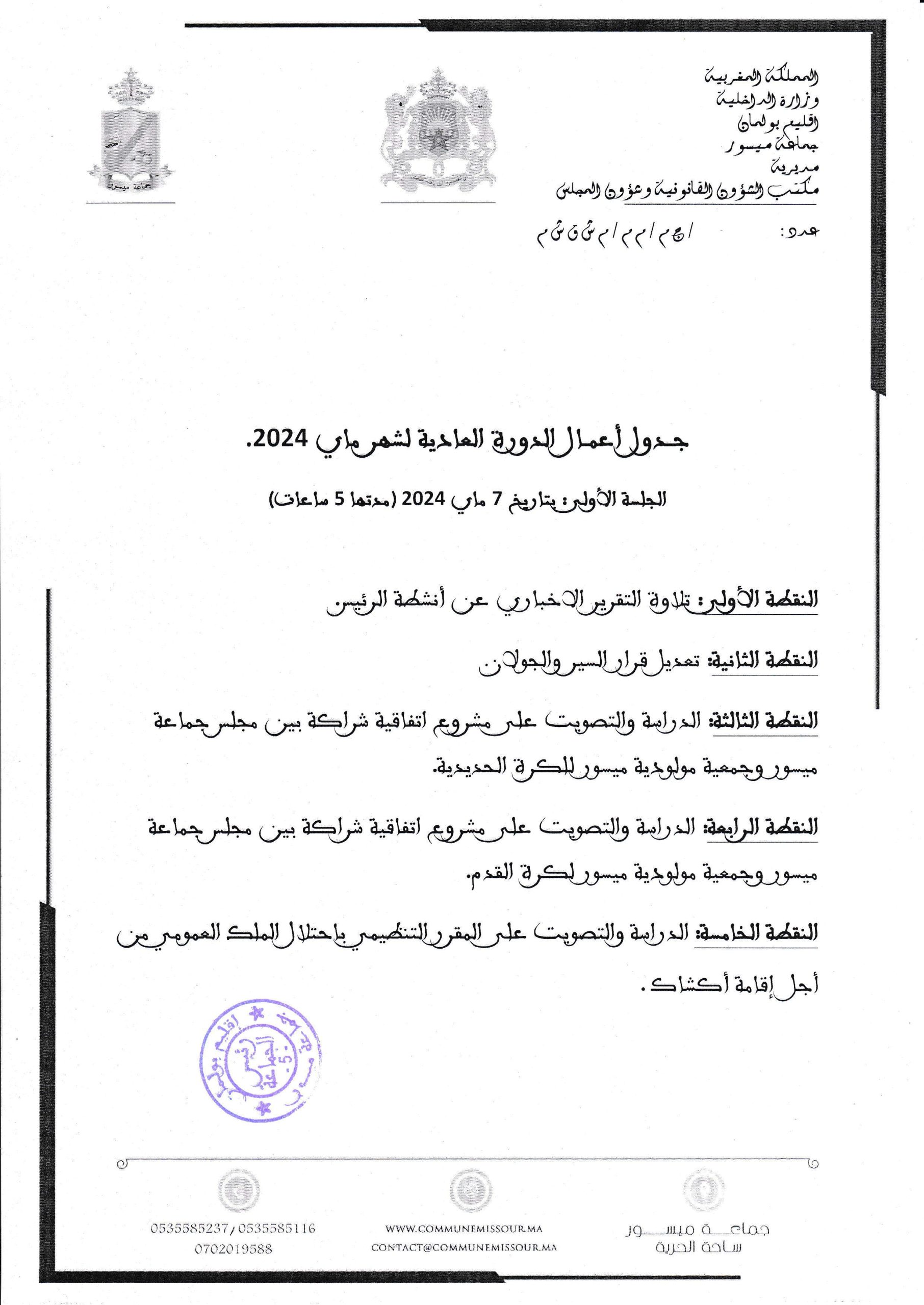 أخبار الجماعة جدول اعمال الدورة العادية لشهر ماي 2024 By Admin Missour 24 أبريل 2024 0 Comments أقل من دقيقة 5118 مشاهدات سنة واحدة مضت Facebook Twitter Pinterest Whatsapp Cloud StumbleUpon طباعة نشر عبر الرابط